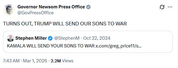 This is also why those who oppose a war with Iran – and up until a week ago, this included all of MAGAworld – invoke “your sons,” just as senior White House Ghoul Stephen Miller did in October 2024.